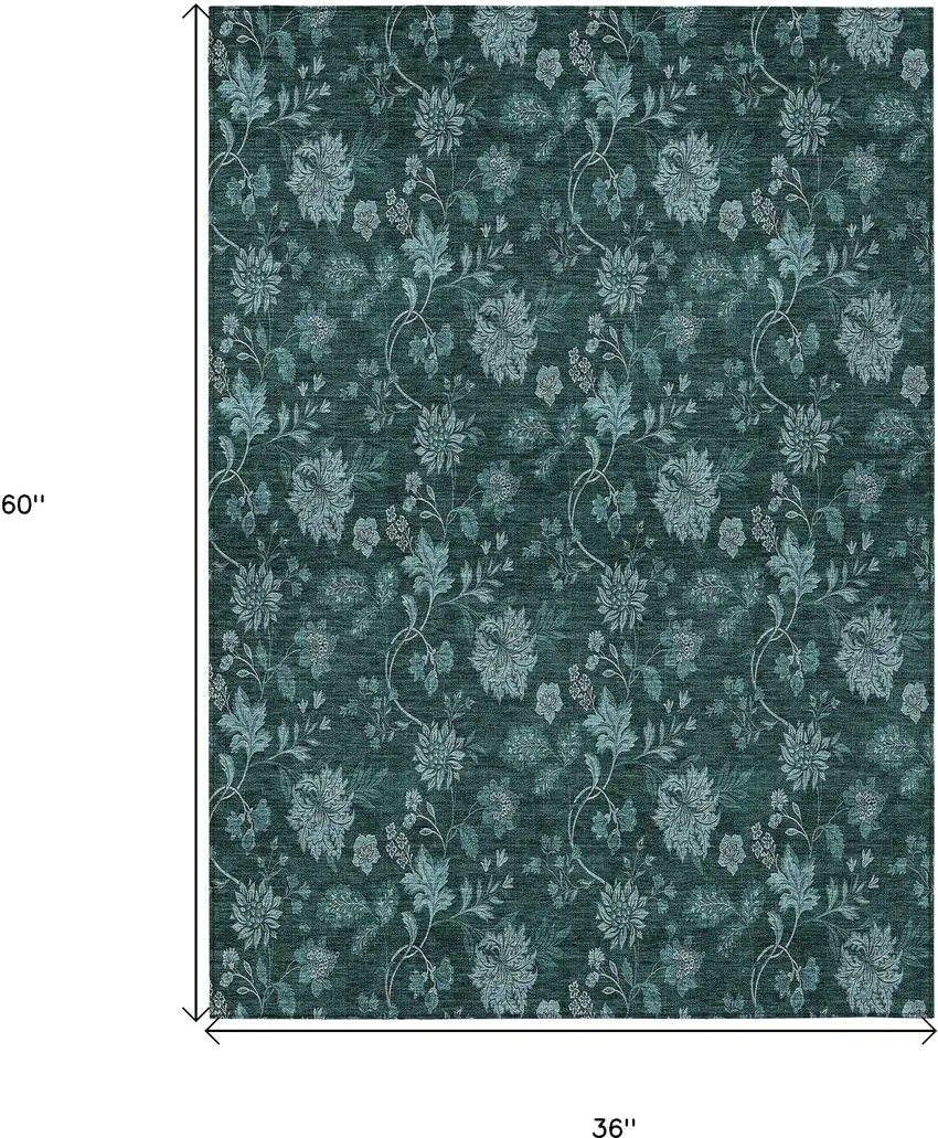 Teal Blue And Aqua Floral Washable Indoor Outdoor Area Rug