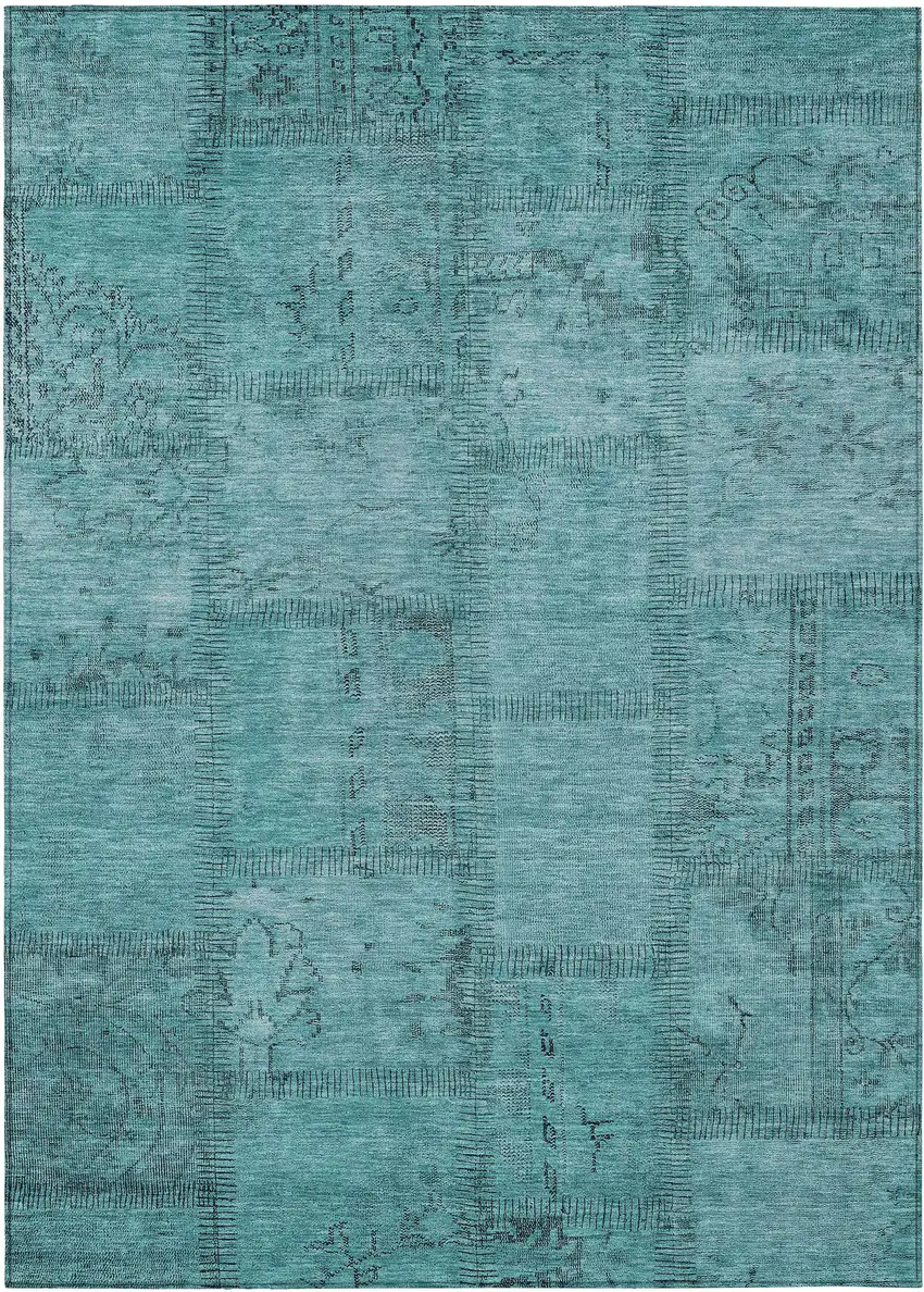 Add some artistry to your room with this 9-foot x 12-foot teal blue and aqua patchwork washable indoor outdoor area rug. This rectangle shaped rug features a patchwork design that will work well both indoors or out. A classic shape marries with good looking design for your living room, hall, bedroom, porch, patio, or poolside. Ideal for outdoor spaces or high traffic areas with kids and pets, this rug is made from heavy duty polyester that is stain resistant to help repel water, dirt, and stains. Makes a great way to dress up your patio, porch, or poolside, but also works well as a durable and easy to maintain option in the kitchen, family room, or mudroom. 108-inch h x 144-inch w x 0.19-inch d.