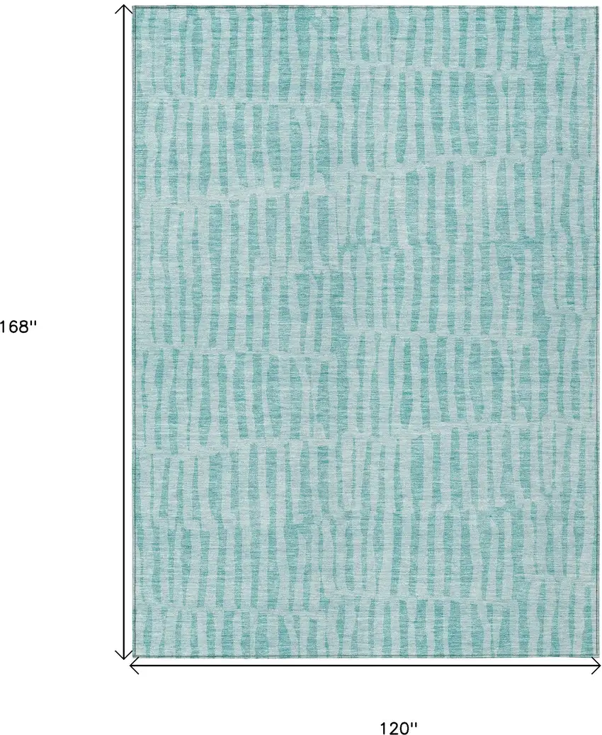 Set an inviting tone in your space with this 10-foot x 14-foot teal blue and aqua striped washable indoor outdoor area rug. This rectangle shaped rug features a striped design that will work well both indoors or out. A classic shape marries with good looking design for your living room, hall, bedroom, porch, patio, or poolside. Ideal for outdoor spaces or high traffic areas with kids and pets, this rug is made from heavy duty polyester that is stain resistant to help repel water, dirt, and stains. Makes a great way to dress up your patio, porch, or poolside, but also works well as a durable and easy to maintain option in the kitchen, family room, or mudroom. 120-inch h x 168-inch w x 0.19-inch d.