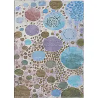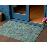 Teal Blue And Beige Abstract Washable Indoor Outdoor Area Rug
