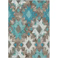 Add great coloration and comfortable texture to your space with this 9-foot x 12-foot teal blue and charcoal tribal washable indoor outdoor area rug. This rectangle shaped rug features a tribal design that will work well both indoors or out. A classic shape marries with good looking design for your living room, hall, bedroom, porch, patio, or poolside. Ideal for outdoor spaces or high traffic areas with kids and pets, this rug is made from heavy duty polyester that is stain resistant to help repel water, dirt, and stains. Makes a great way to dress up your patio, porch, or poolside, but also works well as a durable and easy to maintain option in the kitchen, family room, or mudroom. 108-inch h x 144-inch w x 0.19-inch d.