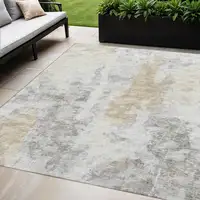 Teal Blue And Gold Botanical Leaves Washable Indoor Outdoor Area Rug