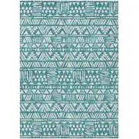 Teal Blue And Gray Damask Washable Indoor Outdoor Area Rug
