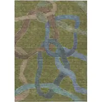 Teal Blue And Green Abstract Washable Indoor Outdoor Area Rug