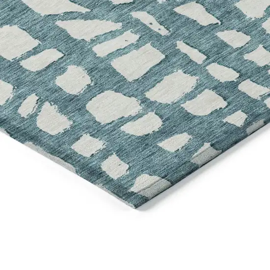 Teal Blue And Ivory Abstract Washable Indoor Outdoor Area Rug