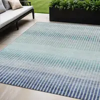 Teal Blue And Ivory Abstract Washable Indoor Outdoor Area Rug