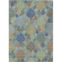 Teal Blue And Ivory Damask Washable Indoor Outdoor Area Rug