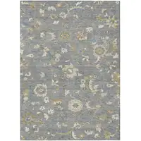 Teal Blue And Ivory Damask Washable Indoor Outdoor Area Rug