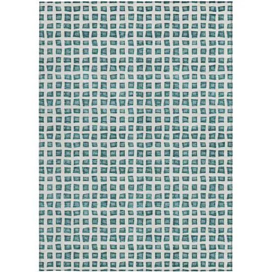 Teal Blue And Ivory Geometric Washable Indoor Outdoor Area Rug