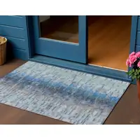 Teal Blue And Ivory Geometric Washable Indoor Outdoor Area Rug