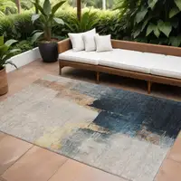 Teal Blue And Ivory Geometric Washable Indoor Outdoor Area Rug
