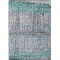 Teal Blue And Ivory Geometric Washable Indoor Outdoor Area Rug