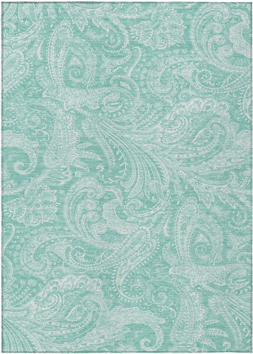 Add great coloration and comfortable texture to your space with this 9-foot x 12-foot teal blue and ivory paisley washable indoor outdoor area rug. This rectangle shaped rug features a paisley design that will work well both indoors or out. A classic shape marries with good looking design for your living room, hall, bedroom, porch, patio, or poolside. Ideal for outdoor spaces or high traffic areas with kids and pets, this rug is made from heavy duty polyester that is stain resistant to help repel water, dirt, and stains. Versatile in use, durable, and easy to maintain, this rug is an ideal solution to add a decorative and inviting touch to your indoor or outdoor space. 108-inch h x 144-inch w x 0.19-inch d.