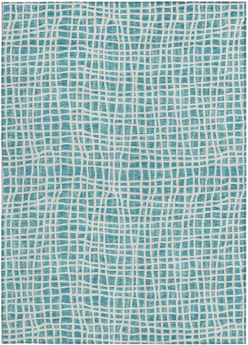 Teal Blue And Ivory Striped Washable Indoor Outdoor Area Rug