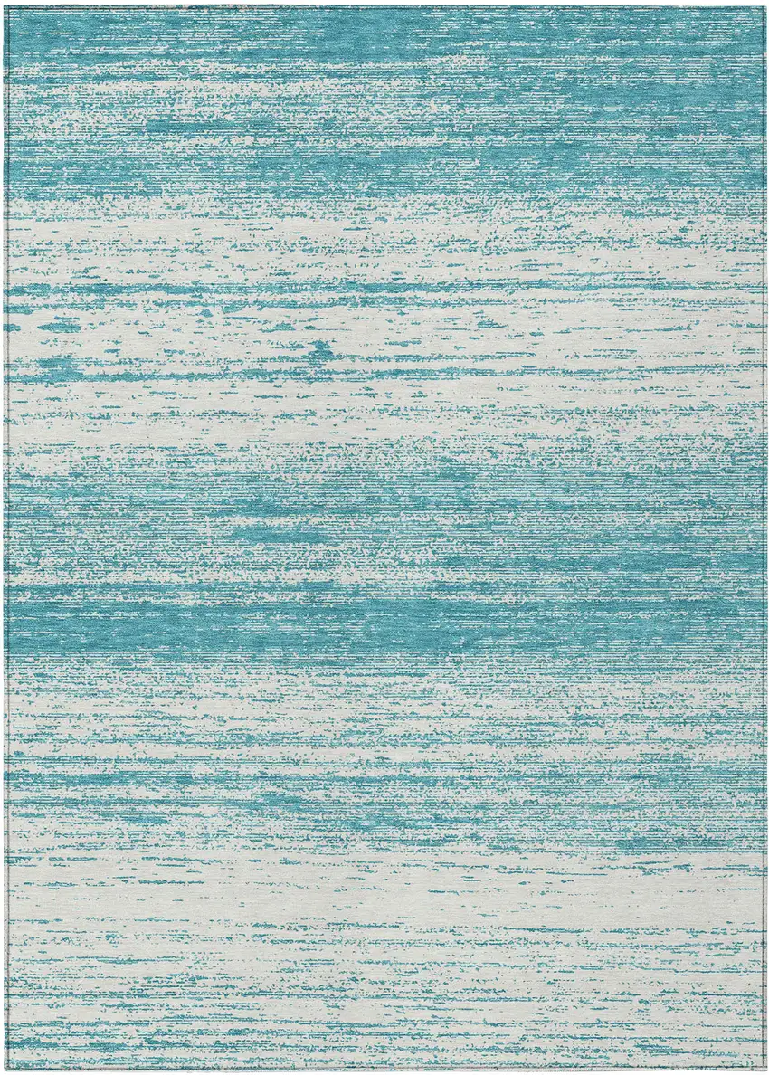 Teal Blue And Ivory Striped Washable Indoor Outdoor Area Rug