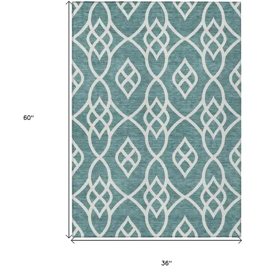 Teal Blue And Ivory Trellis Washable Indoor Outdoor Area Rug