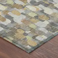 Teal Blue And Wheat Abstract Washable Indoor Outdoor Area Rug