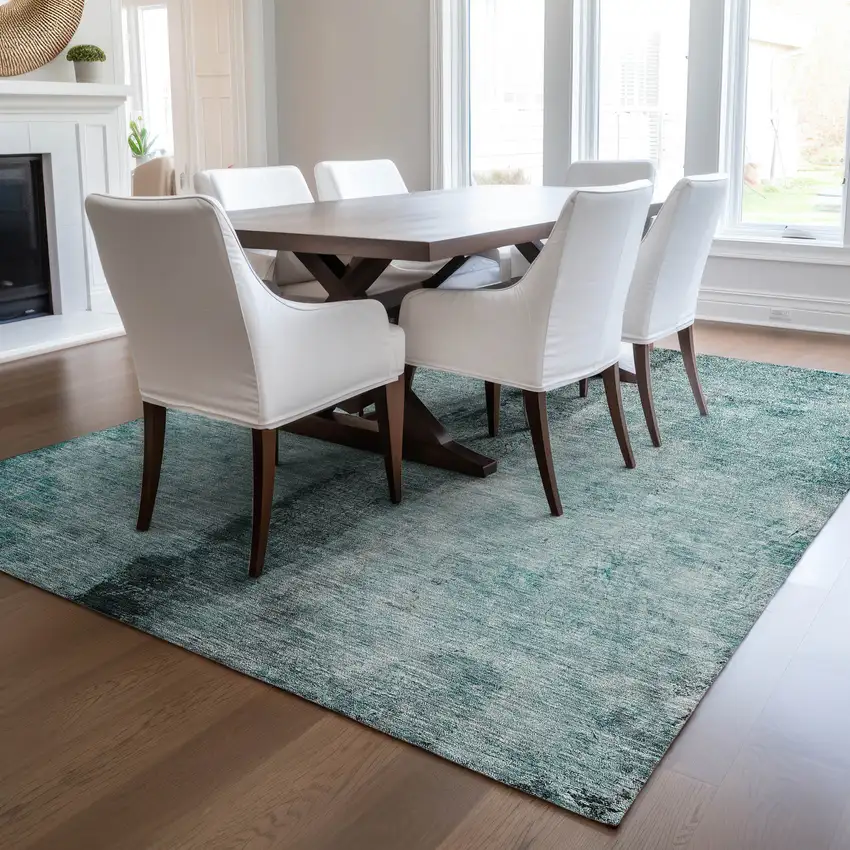 Teal Blue Aqua And Charcoal Abstract Washable Indoor Outdoor Area Rug
