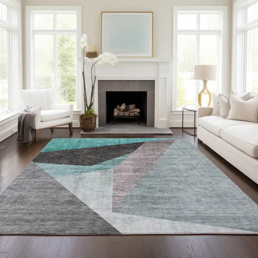 This 10-foot x 14-foot teal blue aqua and charcoal abstract washable indoor outdoor area rug, is a great way to add warmth to a room. This rectangle shaped rug features a abstract design that will work well both indoors or out. A classic shape marries with good looking design for your living room, hall, bedroom, porch, patio, or poolside. Ideal for outdoor spaces or high traffic areas with kids and pets, this rug is made from heavy duty polyester that is stain resistant to help repel water, dirt, and stains. Makes a great way to dress up your patio, porch, or poolside, but also works well as a durable and easy to maintain option in the kitchen, family room, or mudroom. 120-inch h x 168-inch w x 0.19-inch d.