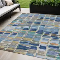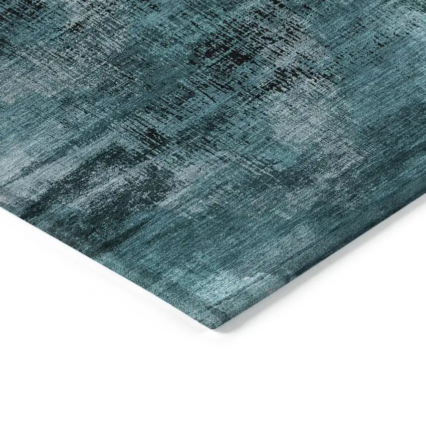 Teal Blue Aqua And Gray Abstract Washable Indoor Outdoor Area Rug