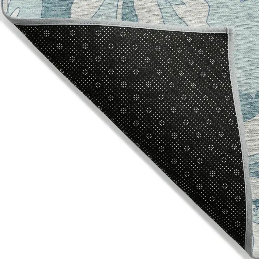 Teal Blue Aqua And Ivory Floral Washable Indoor Outdoor Area Rug