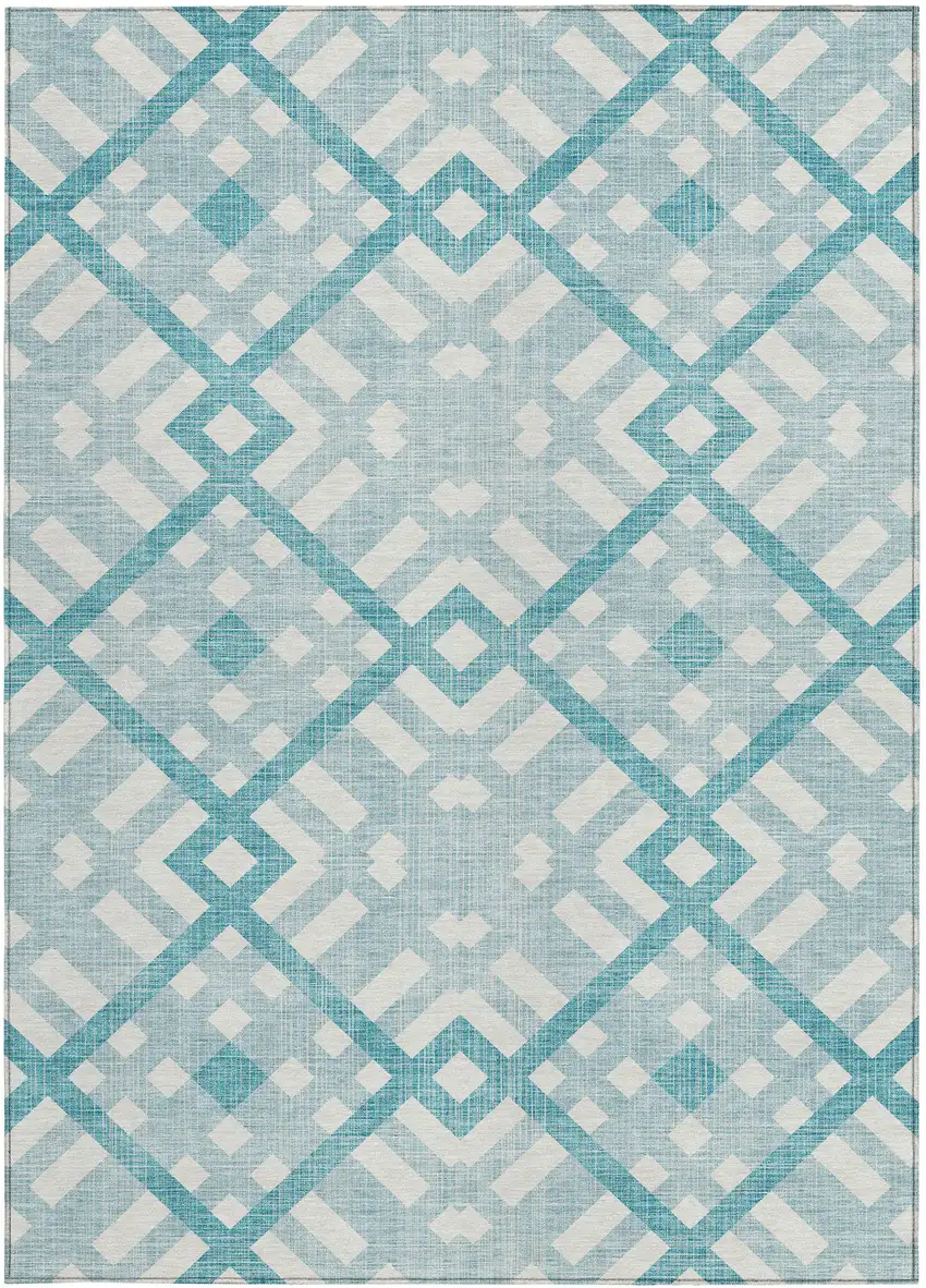 Teal Blue Aqua And Ivory Geometric Washable Indoor Outdoor Area Rug
