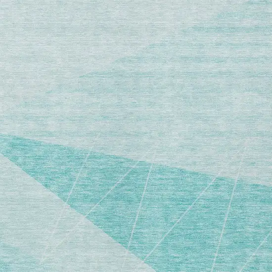 Teal Blue Aqua And Ivory Geometric Washable Indoor Outdoor Area Rug