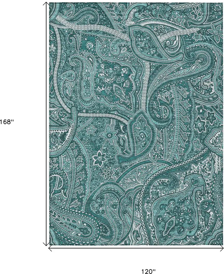 Add great coloration and comfortable texture to your space with this 10-foot x 14-foot teal blue aqua and ivory paisley washable indoor outdoor area rug. This rectangle shaped rug features a paisley design that will work well both indoors or out. A classic shape marries with good looking design for your living room, hall, bedroom, porch, patio, or poolside. Ideal for outdoor spaces or high traffic areas with kids and pets, this rug is made from heavy duty polyester that is stain resistant to help repel water, dirt, and stains. Makes a great way to dress up your patio, porch, or poolside, but also works well as a durable and easy to maintain option in the kitchen, family room, or mudroom. 120-inch h x 168-inch w x 0.19-inch d.