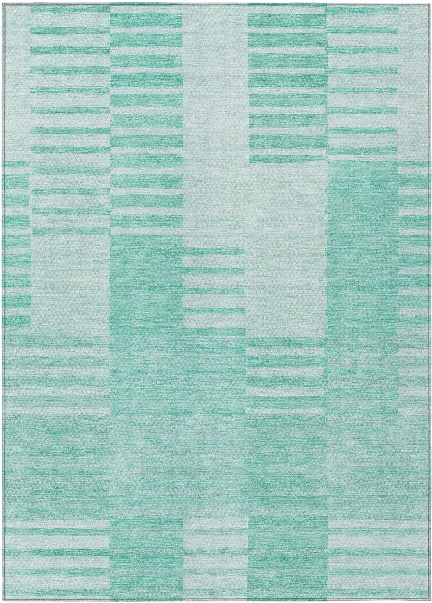 Set an inviting tone in your space with this 8-foot x 10-foot teal blue aqua and ivory striped washable indoor outdoor area rug. This rectangle shaped rug features a striped design that will work well both indoors or out. A classic shape marries with good looking design for your living room, hall, bedroom, porch, patio, or poolside. Ideal for outdoor spaces or high traffic areas with kids and pets, this rug is made from heavy duty polyester that is stain resistant to help repel water, dirt, and stains. Versatile in use, durable, and easy to maintain, this rug is an ideal solution to add a decorative and inviting touch to your indoor or outdoor space. 96-inch h x 120-inch w x 0.19-inch d.