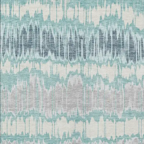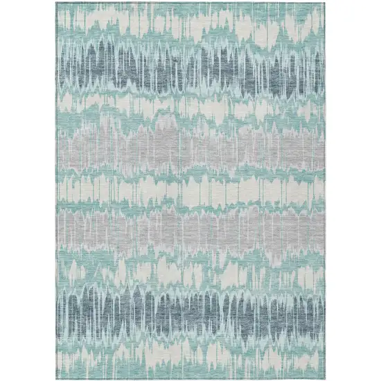 Set an inviting tone in your space with this 9-foot x 12-foot teal blue aqua and silver striped washable indoor outdoor area rug. This rectangle shaped rug features a striped design that will work well both indoors or out. A classic shape marries with good looking design for your living room, hall, bedroom, porch, patio, or poolside. Ideal for outdoor spaces or high traffic areas with kids and pets, this rug is made from heavy duty polyester that is stain resistant to help repel water, dirt, and stains. Versatile in use, durable, and easy to maintain, this rug is an ideal solution to add a decorative and inviting touch to your indoor or outdoor space. 108-inch h x 144-inch w x 0.19-inch d.