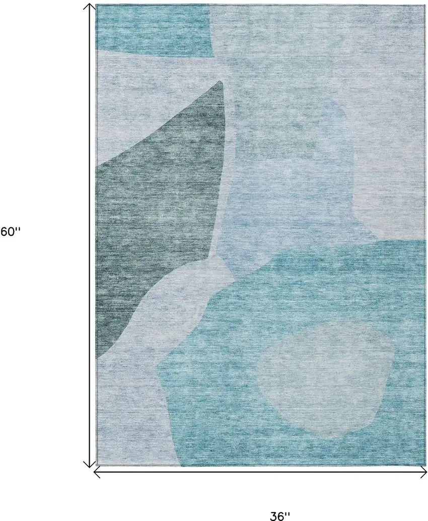 Set an inviting tone in your space with this 3-foot x 5-foot teal blue artichoke green and blue abstract washable indoor outdoor area rug. This rectangle shaped rug features a abstract design that will work well both indoors or out. A classic shape marries with good looking design for your living room, hall, bedroom, porch, patio, or poolside. Ideal for outdoor spaces or high traffic areas with kids and pets, this rug is made from heavy duty polyester that is stain resistant to help repel water, dirt, and stains. Versatile in use, durable, and easy to maintain, this rug is an ideal solution to add a decorative and inviting touch to your indoor or outdoor space. 36-inch h x 60-inch w x 0.19-inch d.