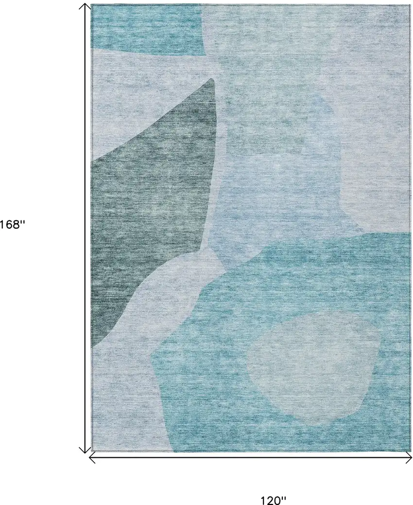 Add some artistry to your room with this 10-foot x 14-foot teal blue artichoke green and blue abstract washable indoor outdoor area rug. This rectangle shaped rug features a abstract design that will work well both indoors or out. A classic shape marries with good looking design for your living room, hall, bedroom, porch, patio, or poolside. Ideal for outdoor spaces or high traffic areas with kids and pets, this rug is made from heavy duty polyester that is stain resistant to help repel water, dirt, and stains. Versatile in use, durable, and easy to maintain, this rug is an ideal solution to add a decorative and inviting touch to your indoor or outdoor space. 120-inch h x 168-inch w x 0.19-inch d.