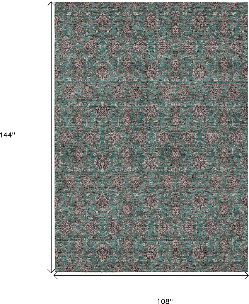Add some artistry to your room with this 9-foot x 12-foot teal blue beige and taupe floral washable indoor outdoor area rug. This rectangle shaped rug features a floral design that will work well both indoors or out. A classic shape marries with good looking design for your living room, hall, bedroom, porch, patio, or poolside. Ideal for outdoor spaces or high traffic areas with kids and pets, this rug is made from heavy duty polyester that is stain resistant to help repel water, dirt, and stains. Versatile in use, durable, and easy to maintain, this rug is an ideal solution to add a decorative and inviting touch to your indoor or outdoor space. 108-inch h x 144-inch w x 0.19-inch d.