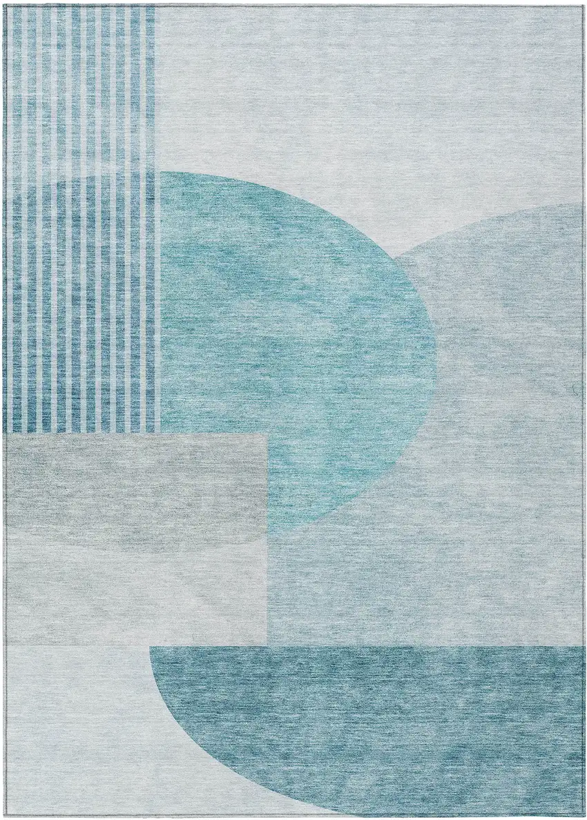 Set an inviting tone in your space with this 10-foot x 14-foot teal blue blue and silver geometric washable indoor outdoor area rug. This rectangle shaped rug features a geometric design that will work well both indoors or out. A classic shape marries with good looking design for your living room, hall, bedroom, porch, patio, or poolside. Ideal for outdoor spaces or high traffic areas with kids and pets, this rug is made from heavy duty polyester that is stain resistant to help repel water, dirt, and stains. Versatile in use, durable, and easy to maintain, this rug is an ideal solution to add a decorative and inviting touch to your indoor or outdoor space. 120-inch h x 168-inch w x 0.19-inch d.