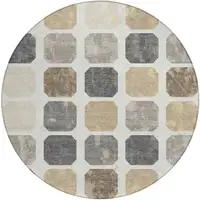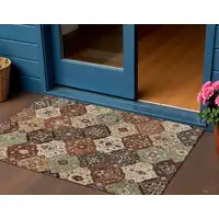 Teal Blue Brown And Beige Geometric Washable Indoor Outdoor Area Rug