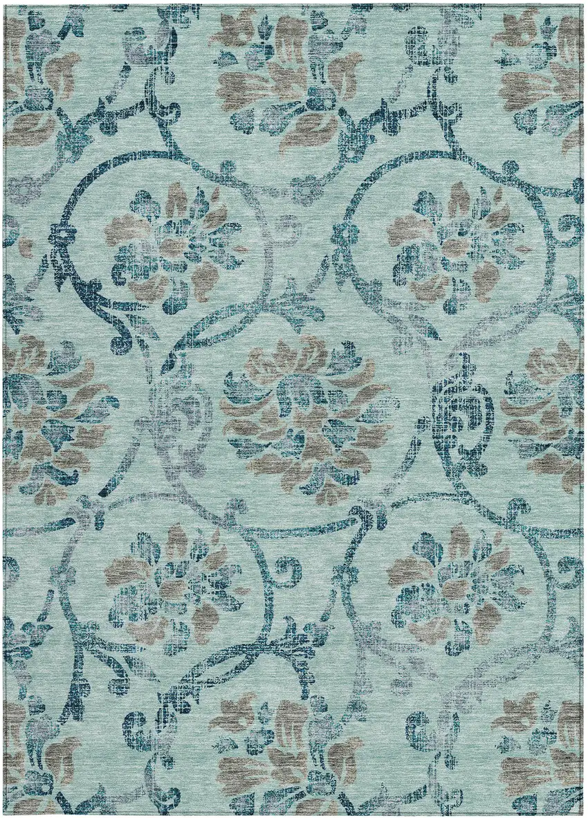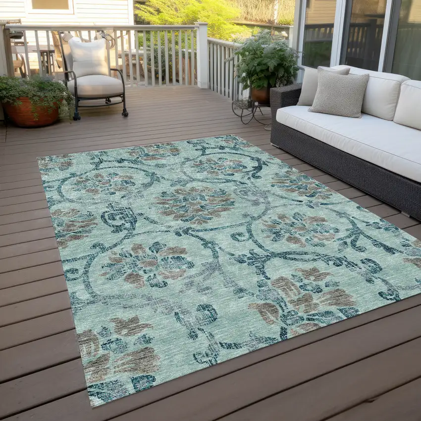 Set an inviting tone in your space with this 8-foot x 10-foot teal blue gray and aqua floral washable indoor outdoor area rug. This rectangle shaped rug features a floral design that will work well both indoors or out. A classic shape marries with good looking design for your living room, hall, bedroom, porch, patio, or poolside. Ideal for outdoor spaces or high traffic areas with kids and pets, this rug is made from heavy duty polyester that is stain resistant to help repel water, dirt, and stains. Versatile in use, durable, and easy to maintain, this rug is an ideal solution to add a decorative and inviting touch to your indoor or outdoor space. 96-inch h x 120-inch w x 0.19-inch d.