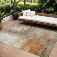 Teal Blue Gray And Taupe Abstract Washable Indoor Outdoor Area Rug