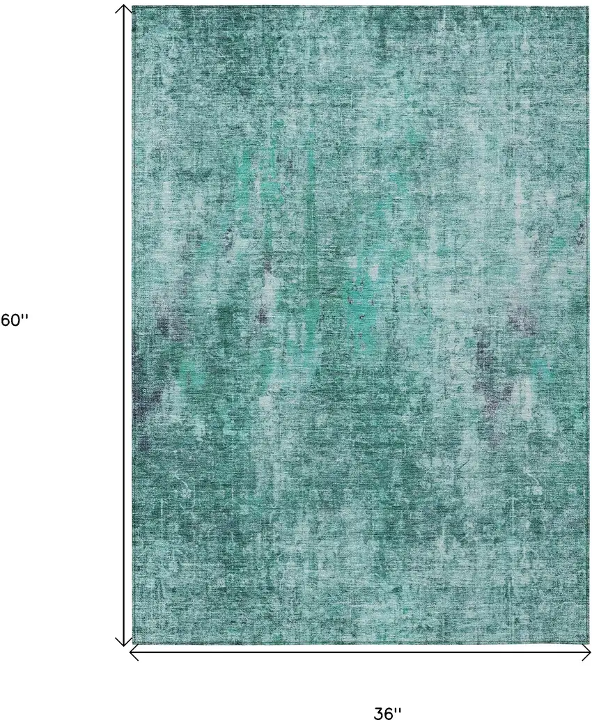 Add great coloration and comfortable texture to your space with this 3-foot x 5-foot teal blue green and gray abstract washable indoor outdoor area rug. This rectangle shaped rug features a abstract design that will work well both indoors or out. A classic shape marries with good looking design for your living room, hall, bedroom, porch, patio, or poolside. Ideal for outdoor spaces or high traffic areas with kids and pets, this rug is made from heavy duty polyester that is stain resistant to help repel water, dirt, and stains. Makes a great way to dress up your patio, porch, or poolside, but also works well as a durable and easy to maintain option in the kitchen, family room, or mudroom. 36-inch h x 60-inch w x 0.19-inch d.