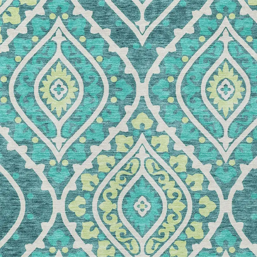 This 10-foot x 14-foot teal blue ivory and artichoke green floral washable indoor outdoor area rug, is a great way to add warmth to a room. This rectangle shaped rug features a floral design that will work well both indoors or out. A classic shape marries with good looking design for your living room, hall, bedroom, porch, patio, or poolside. Ideal for outdoor spaces or high traffic areas with kids and pets, this rug is made from heavy duty polyester that is stain resistant to help repel water, dirt, and stains. Makes a great way to dress up your patio, porch, or poolside, but also works well as a durable and easy to maintain option in the kitchen, family room, or mudroom. 120-inch h x 168-inch w x 0.19-inch d.