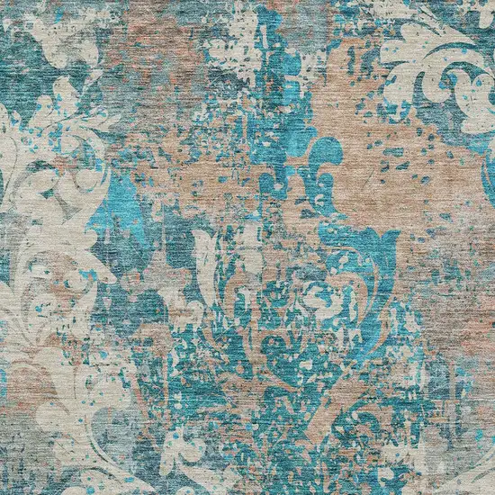 This 3-foot x 5-foot teal blue ivory and light brown damask washable indoor outdoor area rug, is a great way to add warmth to a room. This rectangle shaped rug features a damask design that will work well both indoors or out. A classic shape marries with good looking design for your living room, hall, bedroom, porch, patio, or poolside. Ideal for outdoor spaces or high traffic areas with kids and pets, this rug is made from heavy duty polyester that is stain resistant to help repel water, dirt, and stains. Makes a great way to dress up your patio, porch, or poolside, but also works well as a durable and easy to maintain option in the kitchen, family room, or mudroom. 36-inch h x 60-inch w x 0.19-inch d.