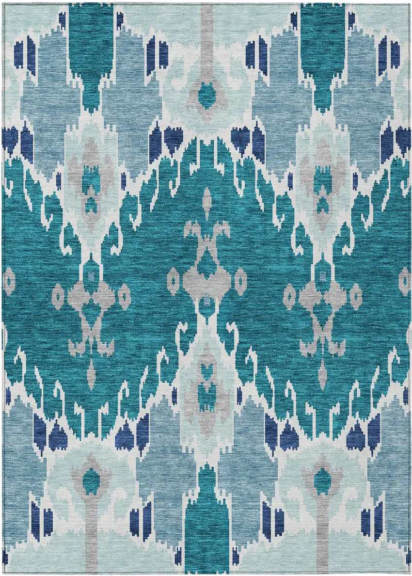 Set an inviting tone in your space with this 10-foot x 14-foot teal blue navy blue and gray ikat washable indoor outdoor area rug. This rectangle shaped rug features a ikat design that will work well both indoors or out. A classic shape marries with good looking design for your living room, hall, bedroom, porch, patio, or poolside. Ideal for outdoor spaces or high traffic areas with kids and pets, this rug is made from heavy duty polyester that is stain resistant to help repel water, dirt, and stains. Makes a great way to dress up your patio, porch, or poolside, but also works well as a durable and easy to maintain option in the kitchen, family room, or mudroom. 120-inch h x 168-inch w x 0.19-inch d.