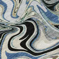 Teal Blue Silver And Gray Floral Washable Indoor Outdoor Area Rug