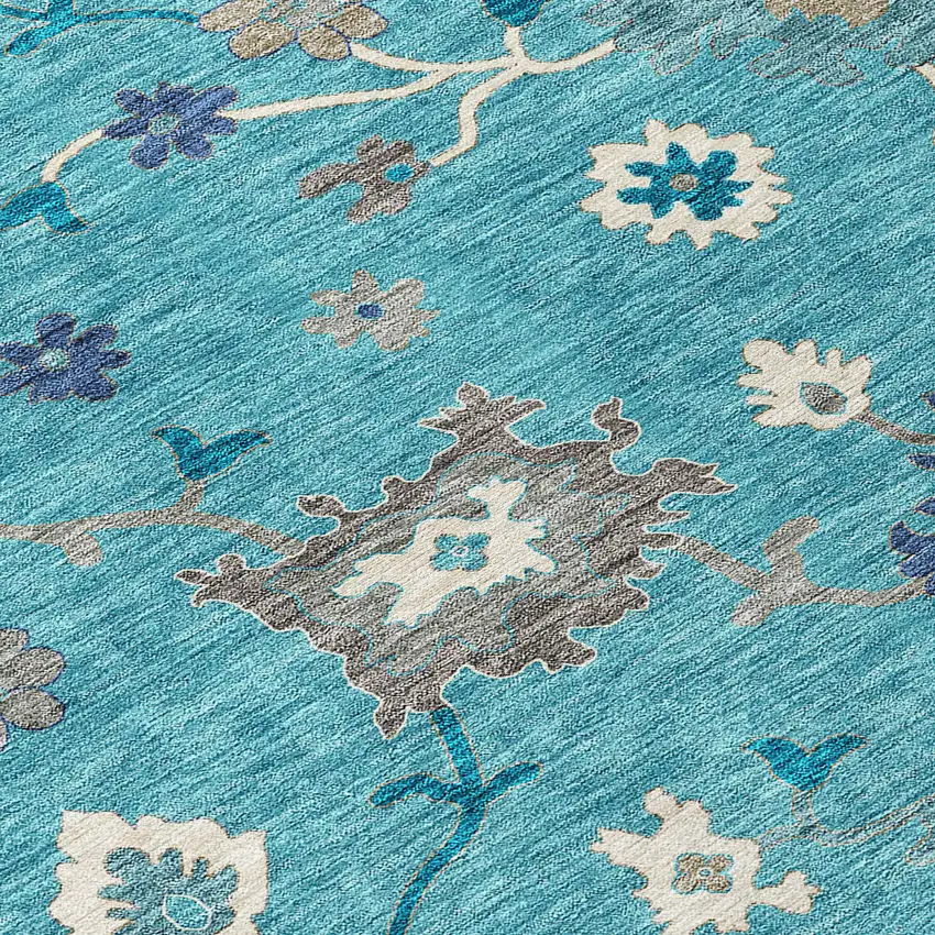 Add great coloration and comfortable texture to your space with this 10-foot x 14-foot teal blue silver and gray floral washable indoor outdoor area rug. This rectangle shaped rug features a floral design that will work well both indoors or out. A classic shape marries with good looking design for your living room, hall, bedroom, porch, patio, or poolside. Ideal for outdoor spaces or high traffic areas with kids and pets, this rug is made from heavy duty polyester that is stain resistant to help repel water, dirt, and stains. Versatile in use, durable, and easy to maintain, this rug is an ideal solution to add a decorative and inviting touch to your indoor or outdoor space. 120-inch h x 168-inch w x 0.19-inch d.