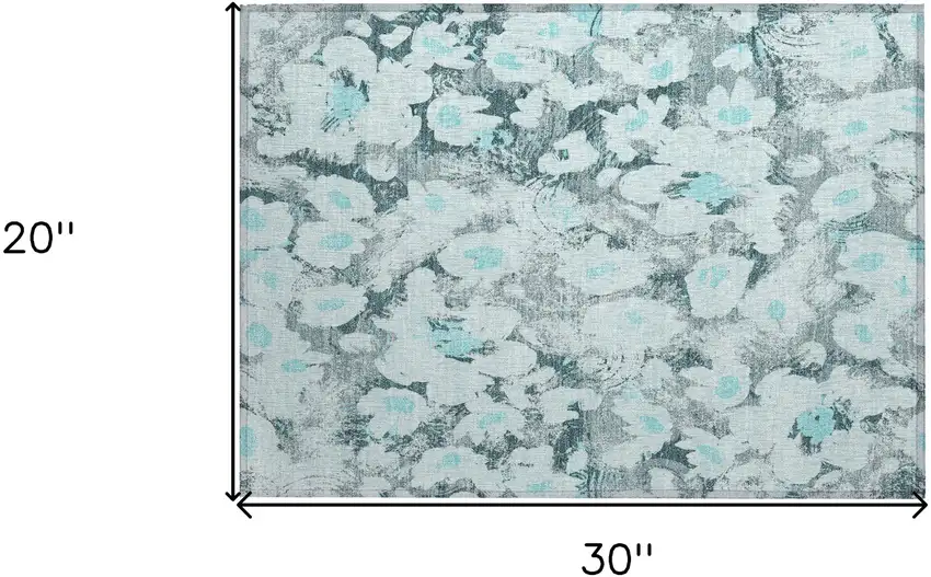 Teal Floral Washable Non Skid Indoor Outdoor Area Rug