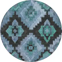 Teal Geometric Washable Non Skid Indoor Outdoor Area Rug