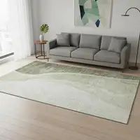 Teal Gray And Ivory Abstract Washable Area Rug With UV Protection