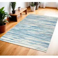 Teal Gray And Ivory Abstract Washable Area Rug With UV Protection