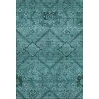 Teal Green And Ivory Abstract Washable Area Rug With UV Protection