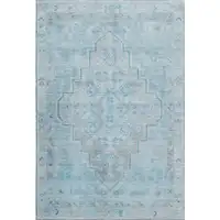 Teal Green And Ivory Abstract Washable Area Rug With UV Protection