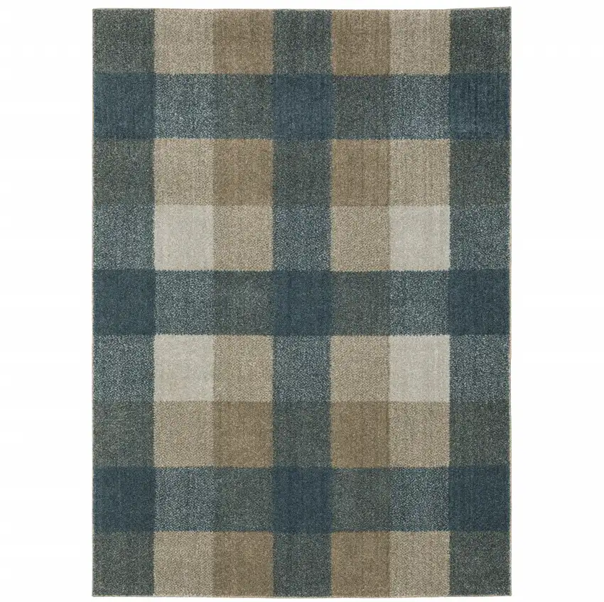 Add a chic finishing touch to your space with this trendsetting rug, artistically showcasing a blend of teal, grey, tan, and beige. Its power-loomed and stain-resistant properties make it an ideal choice for maintaining its beauty amidst everyday use.